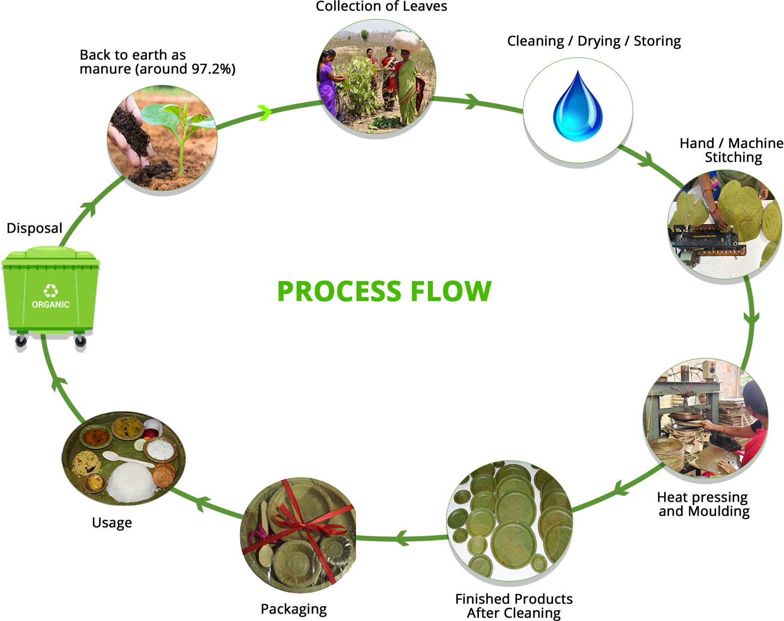 We have started this Eco friendly, biodegradable leaf plate making technology in way back 38 years. These leaf plate market slowly captured by non biodegradable metaled silver foil, stamping foil and printed green foil (since 1996) and spreaded all over globally. At present market consumption in Andhra Pradesh and Telangana is 4.5 cores of plastic coated plates and bowls per day. If these plastic coated plates are replaced by leaf plates and bowls, we can provide (one lakh tribals and rural women) value addition to the primary collectors by 100% to 500% and create employment generation to the rural women.