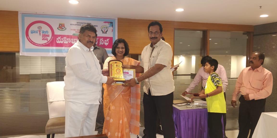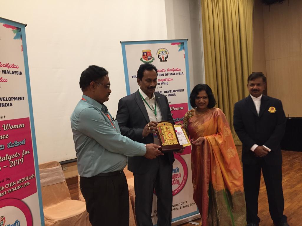 Felicitation by Malaysia Telugu Association on eve of International Women Conference for Training Highest number of women