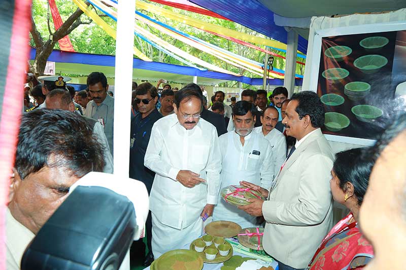 Vice President of India, Shri Venkaiah Naidu garu in RISC 2018, appreciating our leaf plates.